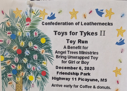Stop 1 Toy Delivery & Flag Ceremony : First Baptist Church, 166 Smith Street, Carriere, MS